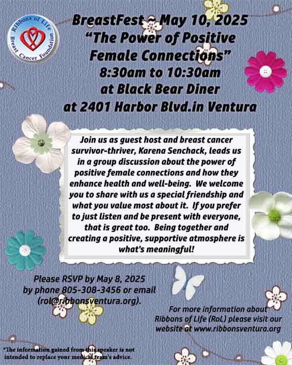 Our formal Ribbons of Life BreastFest was postponed, due to the major Thomas fire in Ventura. A small group gathered to celebrate survival, life, and gratefulness. The fires couldn’t keep us away from each other. Happy Holidays from all of us at Ribbons of Life to all of you. May love be the foundation of wherever you are in your life.